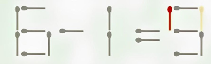 Посмотрите внимательно на картинку, перед вами на которой изображено неверное уравнение. Для того чтобы равенство имело смысл, нужно переставить лишь одну спичку.