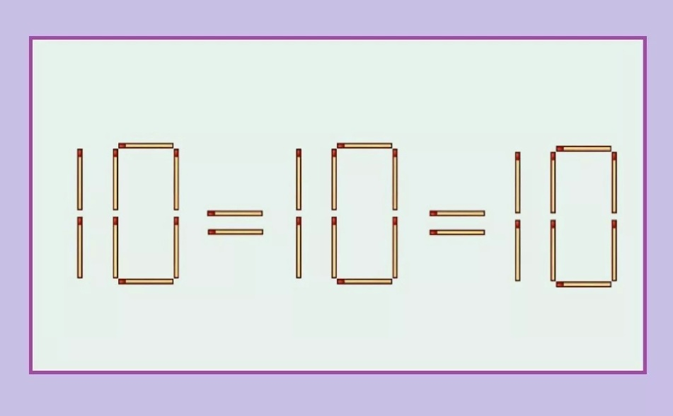 Наш вариант: берём палочку из восьмёрки, превращаем её в ноль. И тогда выходит: 10 = 10 = 10.