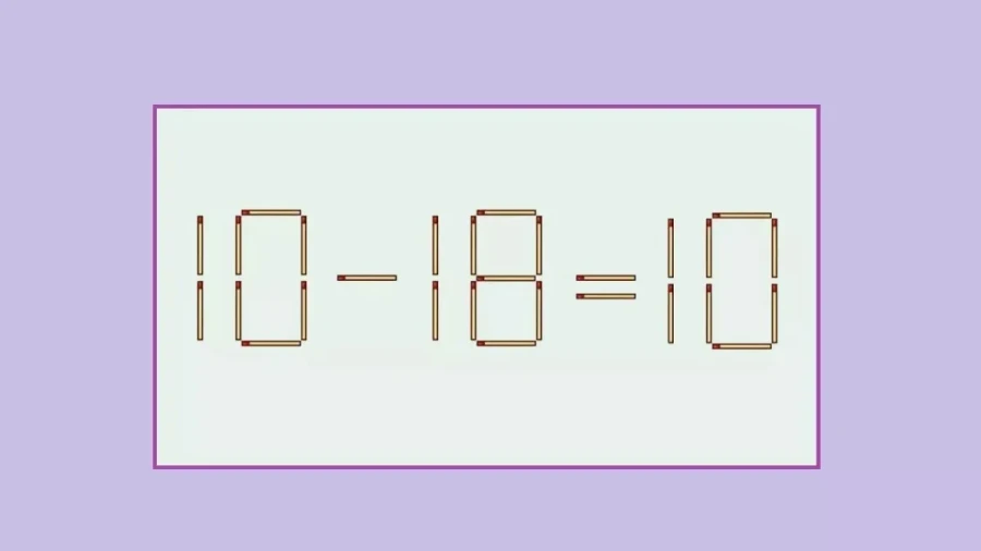 Вот одна из них. Записано: 10 — 18 = 10. Но это не сходится. Тут ошибка. Её надо исправить. Только не переделывать всё, а просто одну спичку передвинуть. Всё. Одно движение.