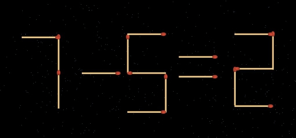Решение вот какое: из «6» уходит палочка, она превращается в «5». Та самая спичка добавляется к «1», и выходит «7». Получается: 7−5=2.