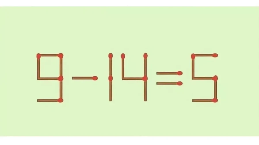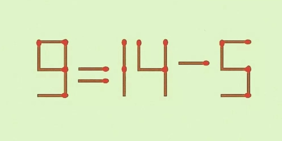 Сегодняшняя головоломка как раз из таких. Запись: 9 − 14 = 5. Понятно, что так не работает. Задача — передвинуть одну спичку. Больше ничего делать не надо.