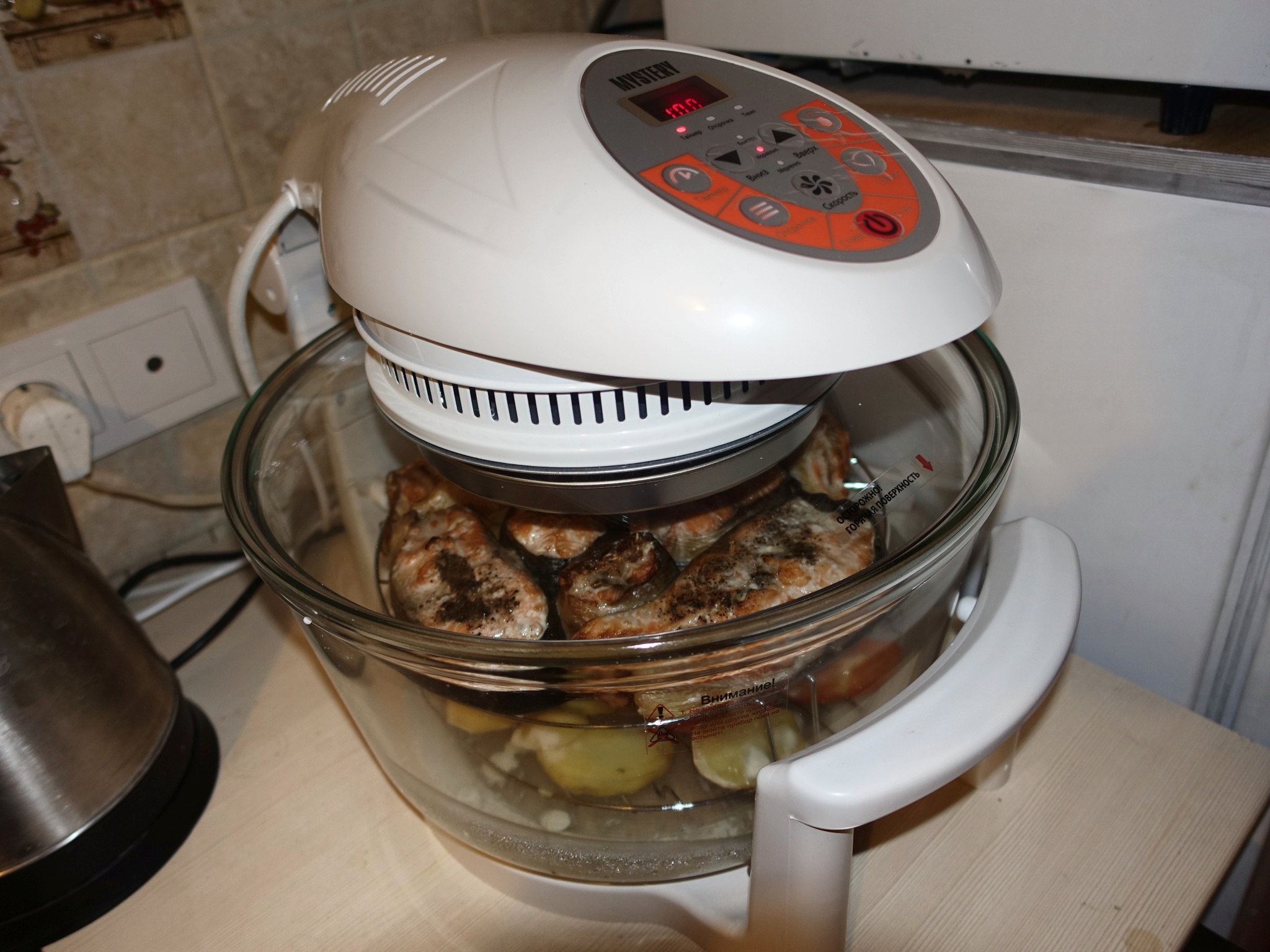 Начнем с того, что этот аэрогриль есть практически на каждом кухне. Этот прибор та же самая духовка с конвекцией. Практически все функции аэрогриля есть у духовки.