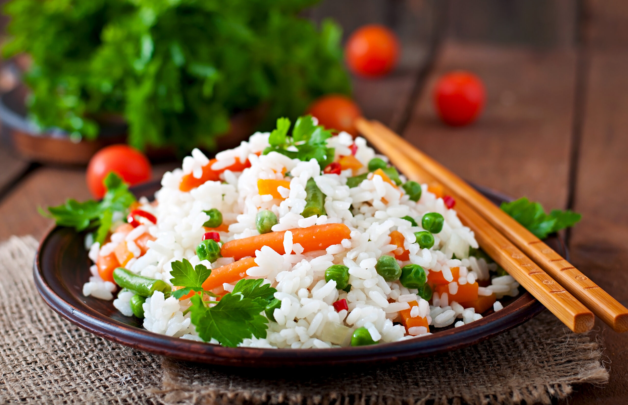 Попробуйте простейший рецепт риса с овощами. На 150 г риса берут морковь, перец, лук и чеснок. Овощи жарят с куркумой и перемешивают с отварным рисом.