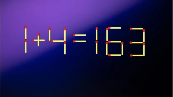Не может сложение единицы и четверки давать в результате 163. Как это поправить? Просто вам необходимо переместить одну спичку.