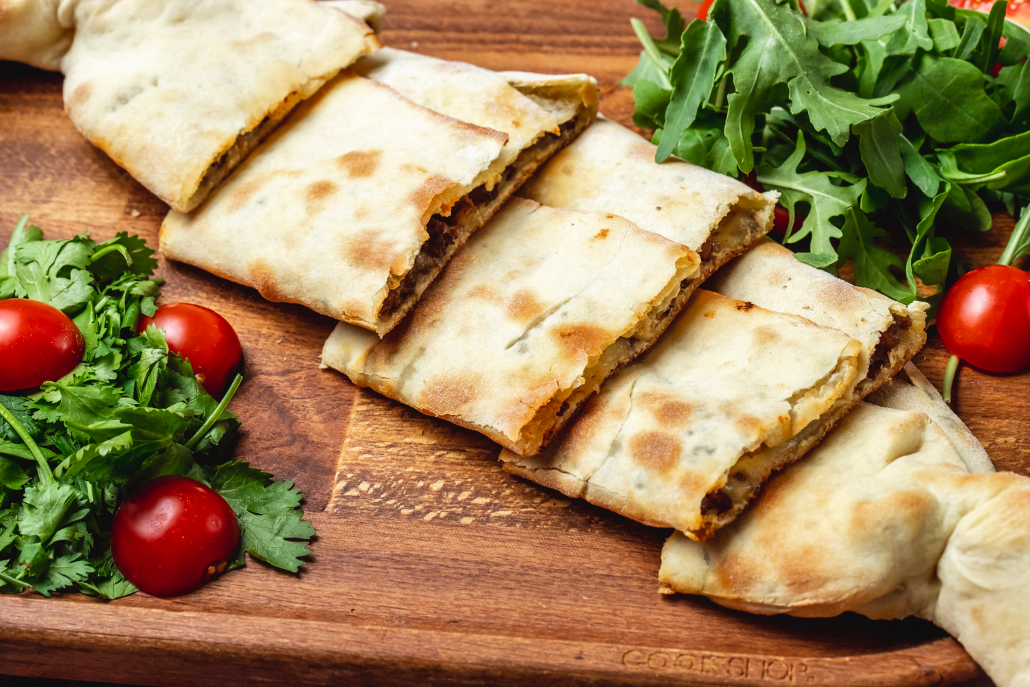Каждый шарик из теста раскатайте в лепешку, в центр положите начинку. Тесто хорошо растягивается, поэтому не порвется. Жарить каждую из лепешек нужно отдельно на среднем огне — с каждой стороны по 3 минуты.