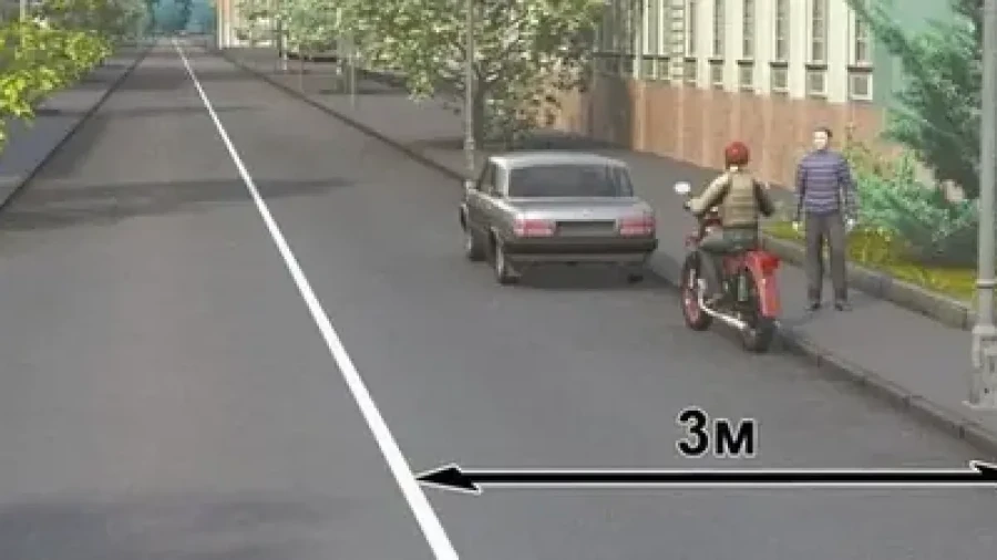 Оба водителя нарушили правило. Расстояние между их транспортными средствами и сплошной линией разметки менее 3 метров, что запрещено. Как видите, чтобы не нарушить правила в данном эпизоде, водителю просто достаточно держать в голове показатель расстояния.
