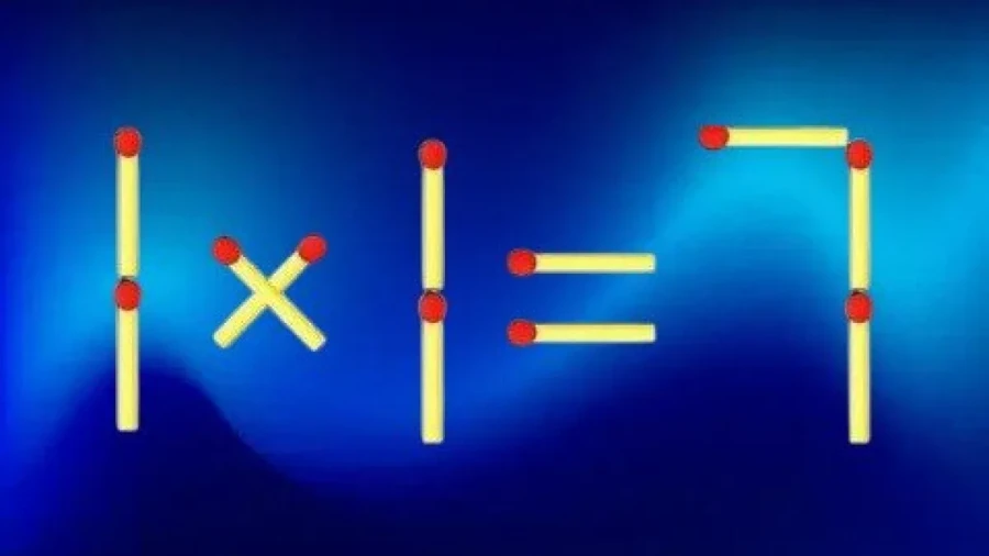 На картинке мы видим очень странное равенство «1×1=7». Явно с ним что-то не так. Однако вам нужно просто переставить одну спичку, что все получилось.