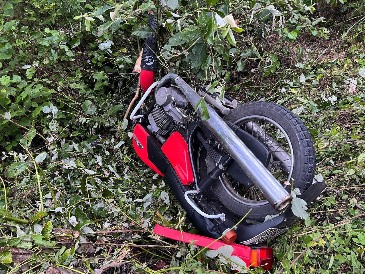 В два часа ночи 12 августа на 2 км автодороги А114 Мошенского округа 16-летний подросток за рулем мотоцикла «Ява» также не справился с управлением и улетел в кювет.