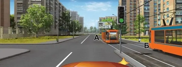 Вы хотите повернуть направо, но справа от вас едут сразу два трамвая навстречу друг другу. Надо ли вам их пропускать?