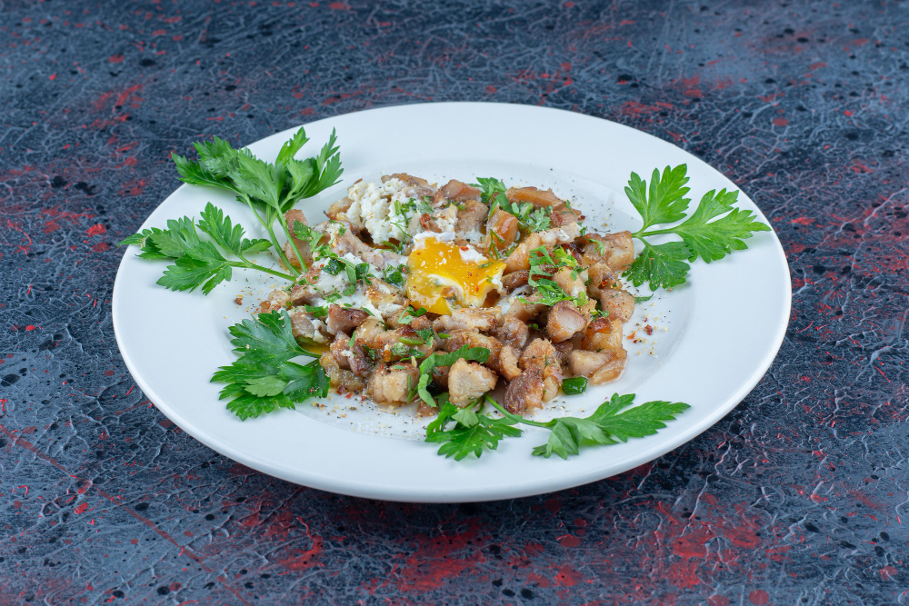 Чем-то напоминает «Оливье», только без излишеств. Всё попроще, подешевле, но от этого не хуже. Наоборот, сытный, нежный, и съедается быстро.