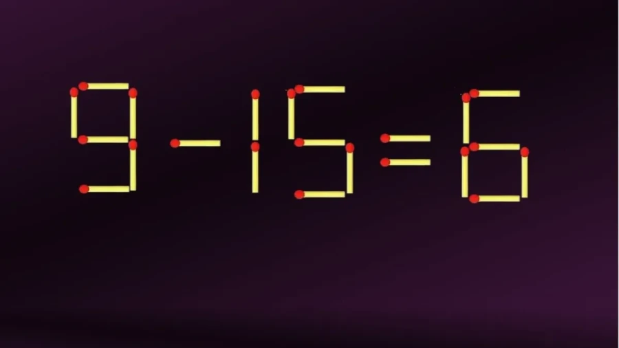 Перед нами типичный пример «9-15=6». Видно сразу, что тут что-то не так. Исправить можно, но есть правильно: трогать можно лишь одну спичку.