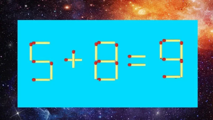 Ну что, проверим вас сейчас? На картинке перед вами пример «5+8=9». Сразу видно, что что-то не сходится. Вам можно двигать всего лишь одну спичку. А какую именно, уже думайте сами.