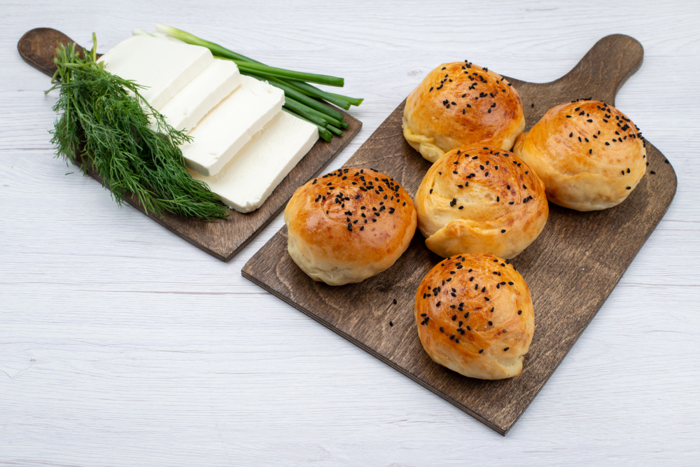 Затем его делят на небольшие кусочки и укладывают в смазанную маслом форму. Пампушки оставляют немного постоять и отправляют в духовку.
