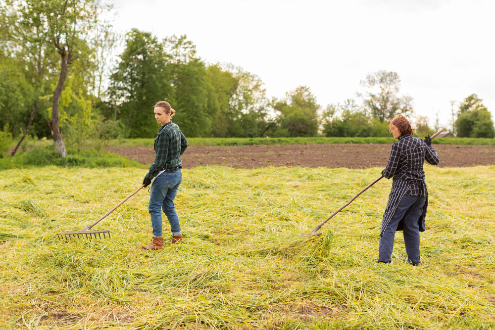 Это особенно важно для заготовки сена: аккуратно срезанная трава сохраняет больше сока, который ферментируется на солнце, придавая сену вкус и аромат. Бензокоса не только портит траву, но и во время жаркой погоды ещё сильнее замедляет рост. К тому же выхлопные газы могут попадать в сено, а затем к животным, чьё молоко вы употребляете.