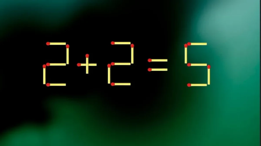 Попробуйте взглянуть на иллюстрацию: на первый взгляд всё просто, но равенство «2+2=5» вызывает недоумение. Ваша цель — не переписывать пример заново, а аккуратно передвинуть всего одну спичку. Больше трогать нельзя, правила строгие.