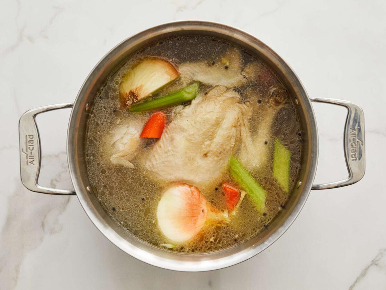 Секрет вовсе не в долгой варке, а в правильной температуре. Мясо готово, когда внутри прогреется до 75 °C. Если термометра нет, варите целое филе без кости 20–25 минут на медленном огне после закипания.