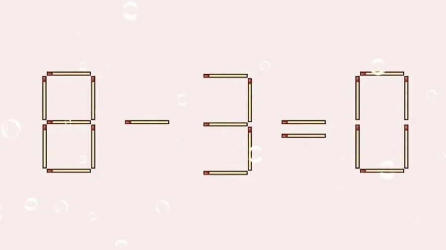 На картинке показано выражение 8−3=0. Ошибка очевидна, и вся хитрость в том, что исправить её можно, переставив всего одну спичку. Если вы нашли решение быстро, можно смело считать, что у вас прекрасная математическая интуиция и острый ум.