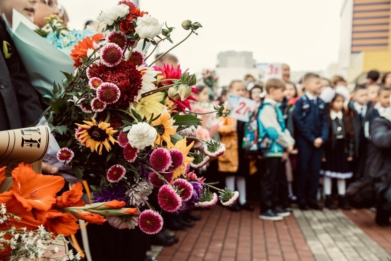 На линейку приходят с цветами для учителей — традиция. Какой букет выбрать? Лучше из сезонных цветов — гладиолусы, астры, хризантемы. Избегайте излишней помпезности и избытка декора. Сам букет должен быть легким и компактным — держать же его ребенку.