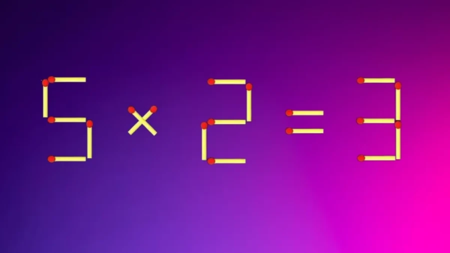 В этот раз все очень просто. Перед вами пример «5×2=3». В нем явно присутствует ошибка, которую можно и нужно исправить. Нужно лишь чуть-чуть хитрости и всего одна переставленная спичка, чтобы всё стало на свои места.