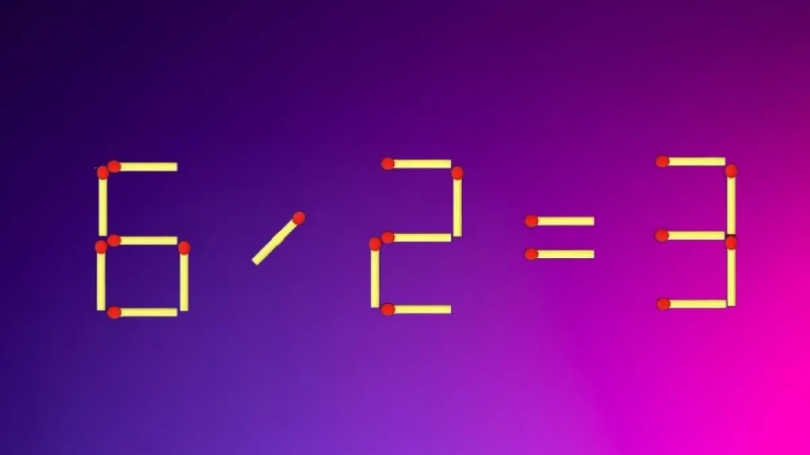 Подумайте, где можно убрать лишний элемент и как его использовать с пользой. Если приглядеться к знаку умножения, то его легко превратить в деление. А освободившаяся палочка поможет изменить «5» на «6». В результате, если вы сделали все правильно, то у вас получится «6:2=3».