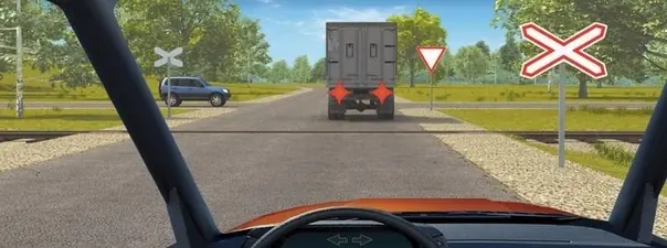 Вы подъезжаете к ЖД-переезду, за которым остановился грузовик. Имеете ли вы право выехать на сам переезд?
