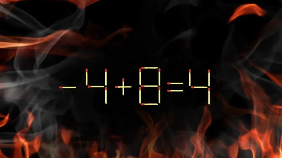 На иллюстрации показан пример «−11+8=4», в котором специально допущена ошибка. Исправить её можно, если передвинуть всего одну спичку.