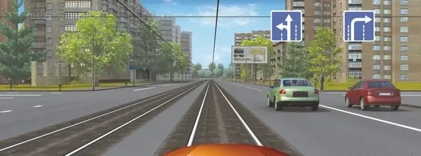 Водителям легковых ТС запрещено движение по трамвайным путям попутного направления при наличии знаков 5.15.1 и 5.15.2. Они показывают количество полос и разрешенные направления.