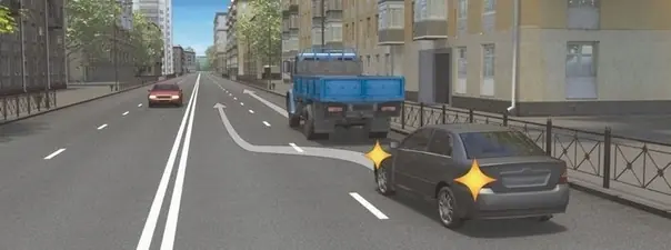 После перестроения водитель будет ехать прямо. Он поедет быстрее, чем автомобиль в соседнем ряду. Это действие называется опережение.