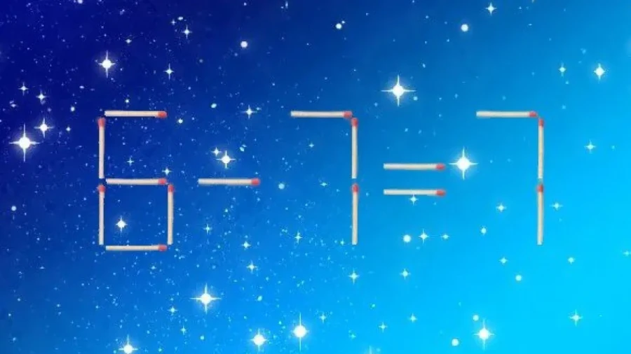 На иллюстрации показано равенство «6-7=7», составленное из спичек. В записи есть ошибка, которую легко исправить, передвинув всего один элемент. Для решения понадобится не только логика, но и немного воображения.