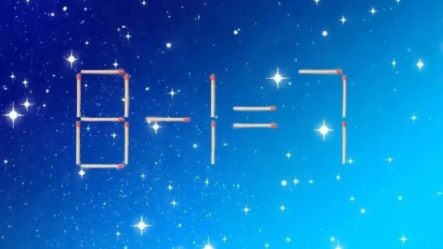 Правильное решение видно на рисунке: спичку берут из первой семерки, превращая «6» в «8». В результате получается верное равенство «8-1=7».