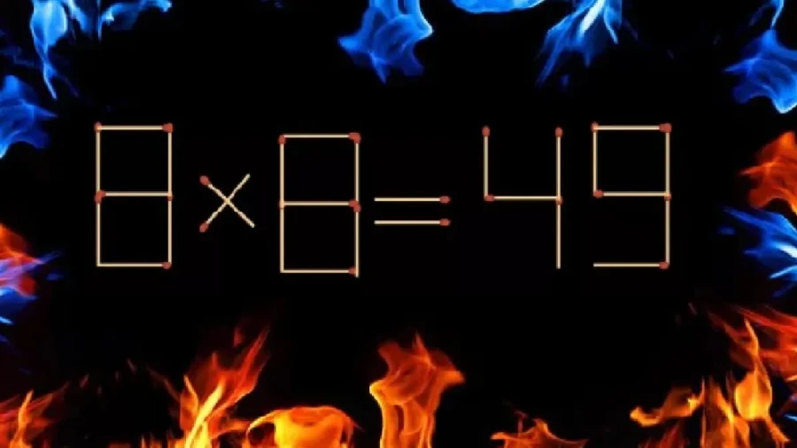 Перед вами одна из таких головоломок со спичками. Смотрим на равенство «8×8=49». Тут есть ошибка, и её можно исправить, переставив всего один элемент. Множитель и знак умножения менять не нужно — это маленькая подсказка.