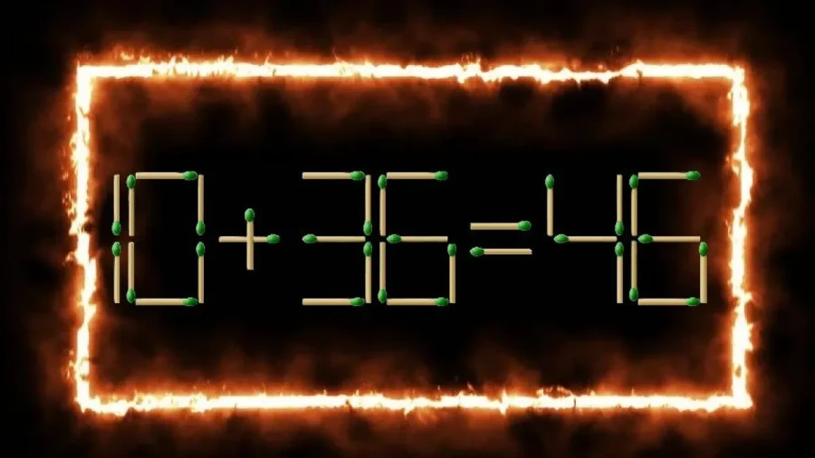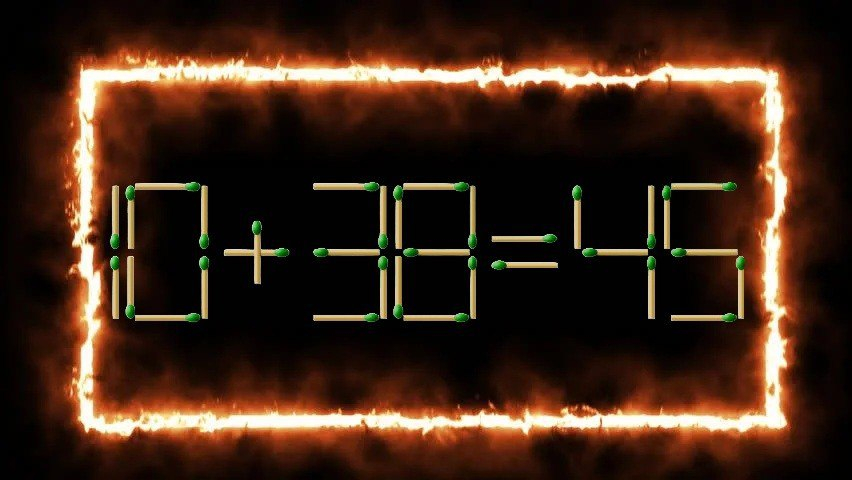 Перед вами пример «10+38=45», в котором явно что-то не сходится. Вам нужно переставить всего одну спичку, чтобы исправить это неравенство.