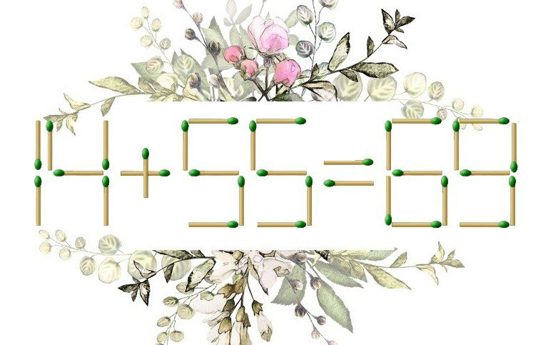 Подсказка проста: внимательнее присмотритесь к цифрам, особенно к шестерке. Если убрать у неё одну лишнюю спичку, получится «5». Тогда выражение меняется, и уже перед глазами правильная запись: «14+55=69».