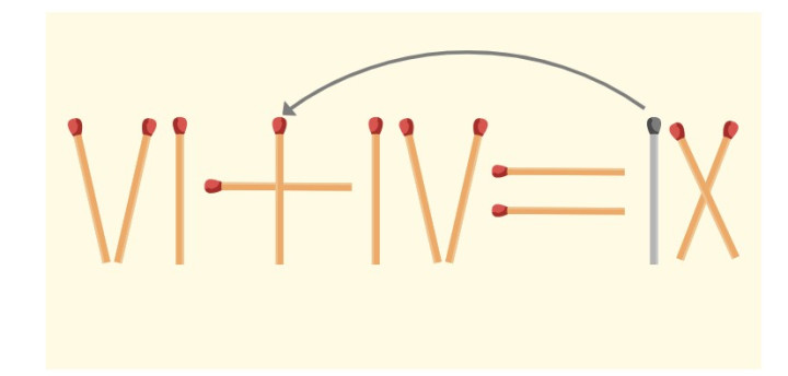 Ваша задача — переместить одну спичку всего лишь за 15 секунд, так, чтобы ошибка в равенстве была устранена. Помните, не убрать, а именно переместить.
