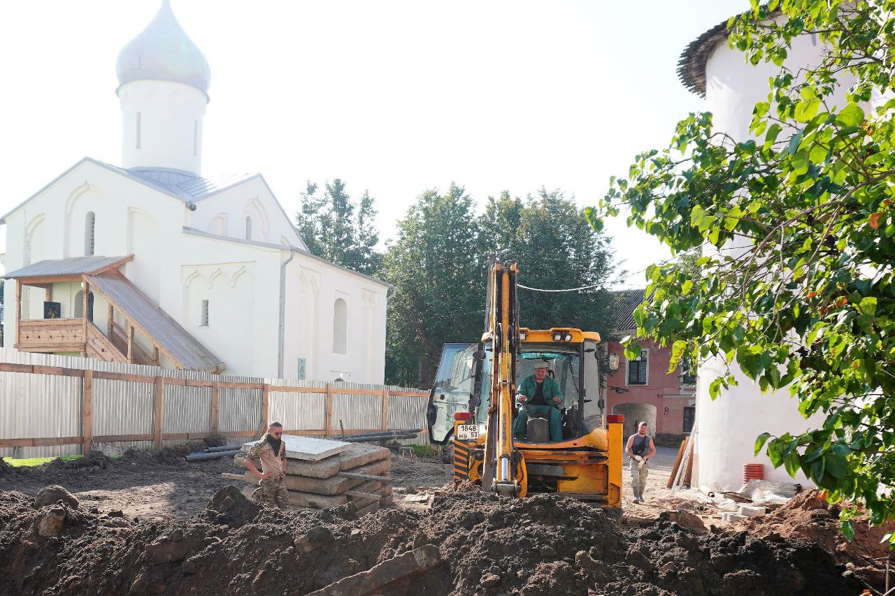 Готовится участок для замощения и благоустройства, после работ по укладке системы новых тепловых сетей у Николо-Дворищенского собора и церкви Жён-мироносиц.