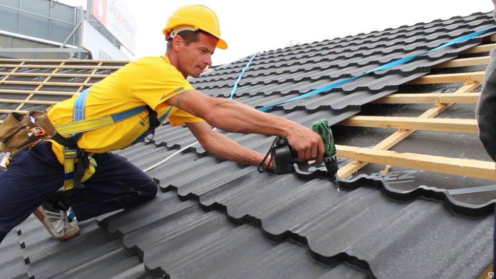 Вначале лист просто фиксируется, используя для этого шуруп — саморез ввинчиваемый посередине (делается для дальнейшего выравнивания листа). После укладки второго и нескольких последующих листов (внахлест) они должны по углам предварительно фиксироваться и выравниваться по уровню карниза.