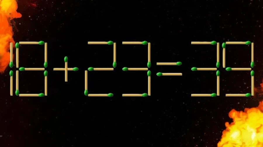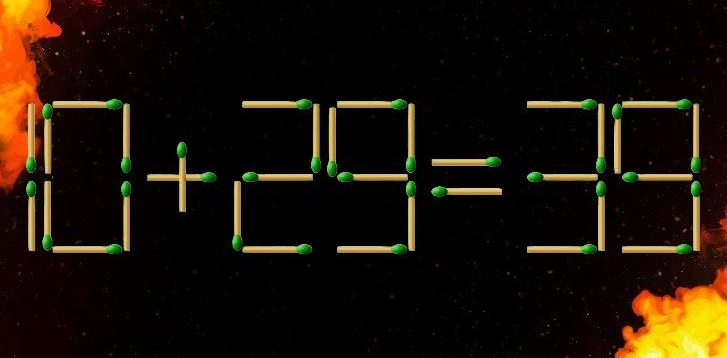 С виду простая запись «18+23=39» оказывается неправильной, и на первый взгляд не совсем ясно, где кроется подвох. Но условие жёсткое — можно переставить только одну спичку.
