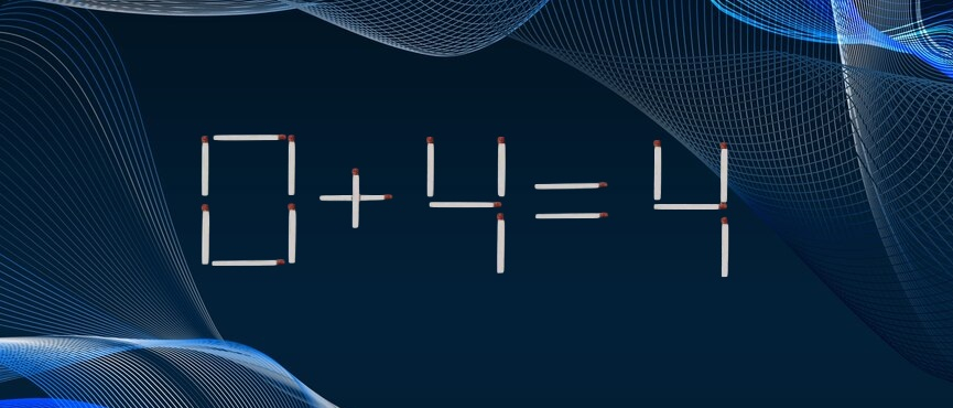 Сегодня перед нами простая на вид, но любопытная головоломка со спичками. На картинке дано равенство «6+4=4», но что-то здесь явно не так. Ваша задача — всего лишь передвинуть одну палочку, чтобы исправить ошибку. Больше ничего трогать нельзя.