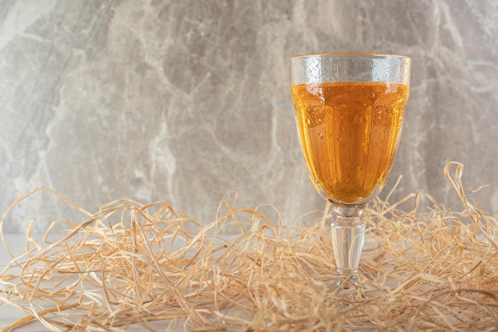 Эту смесь нужно смешать с самогоном и лимонным соком. Наливка настаивается в течение получаса. После напиток готов к употреблению.