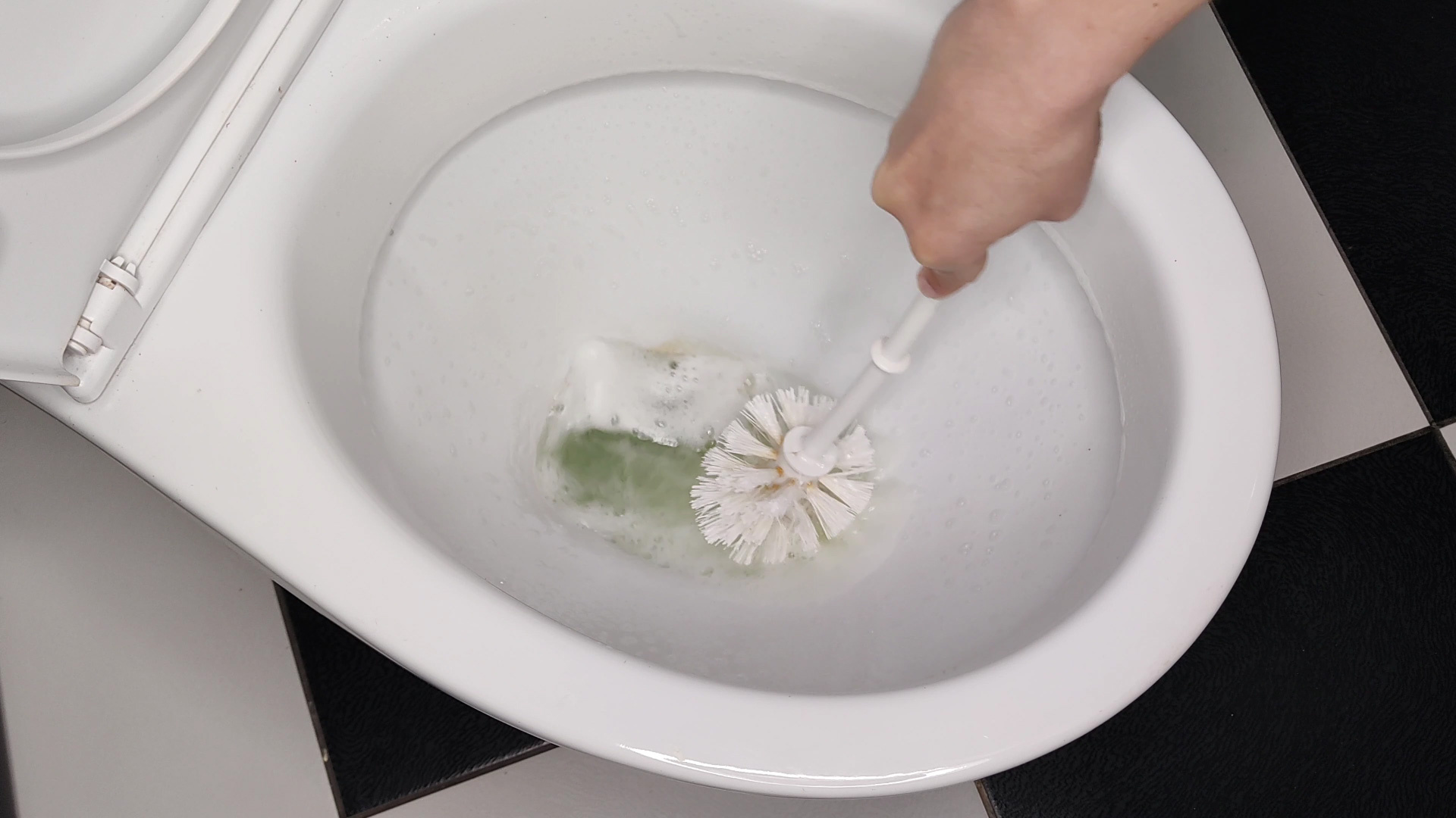 Через час с помощью ершика отмываем унитаз. Он снова чистый и белоснежный.