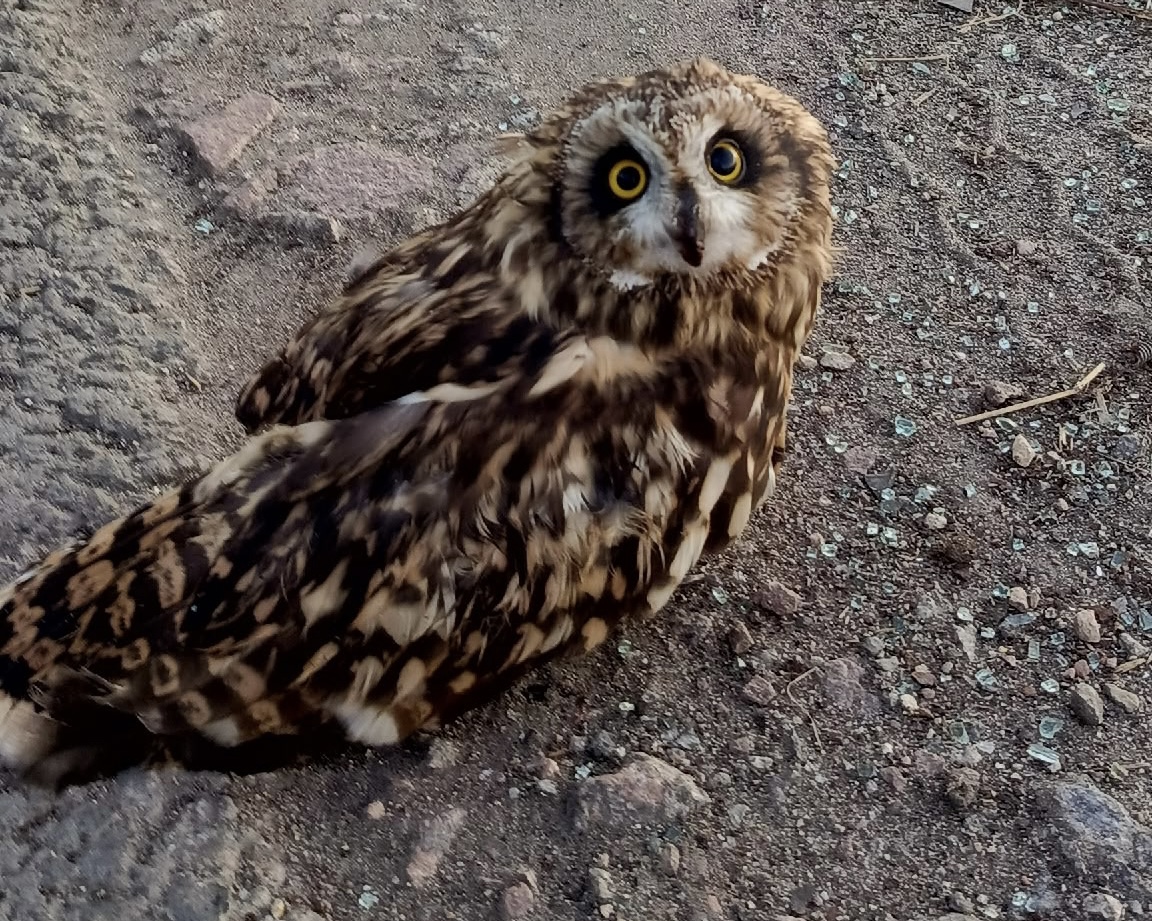 Раненая птица, похожая на Буклю Гарри Поттера, сидела на обочине трассы и терпеливо ждала спасителей.