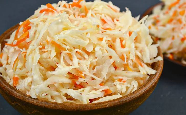 Квашеная капуста. Содержит витамин С, органические кислоты и пробиотики. Все они в совокупности разжижают кровь, укрепляют сосуды, снижая риск образования тромбов.