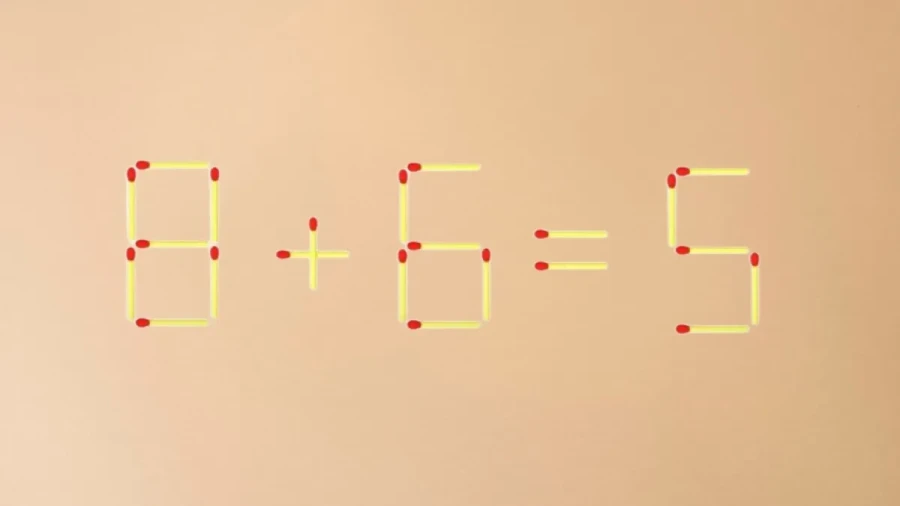 Представляем вашему вниманию еще одну задачу со спичками. На картинке изображено равенство «8+6=5». Вам, естественно, нужно его исправить. Вы спросите, как это сделать? Очень просто: передвинуть всего одну палочку. Однако нужно будет включить в работу смекалку.