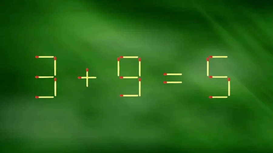 Перед вами равенство «3+9=5». Понятно, что оно составлено специально с ошибкой. Нужно всего лишь переставить одну спичку, чтобы всё сошлось.