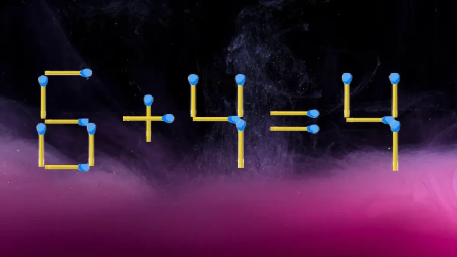 На картинке дано равенство «6+4=4», в котором допущена ошибка. Все, что требуется, — сдвинуть одну единственную спичку.