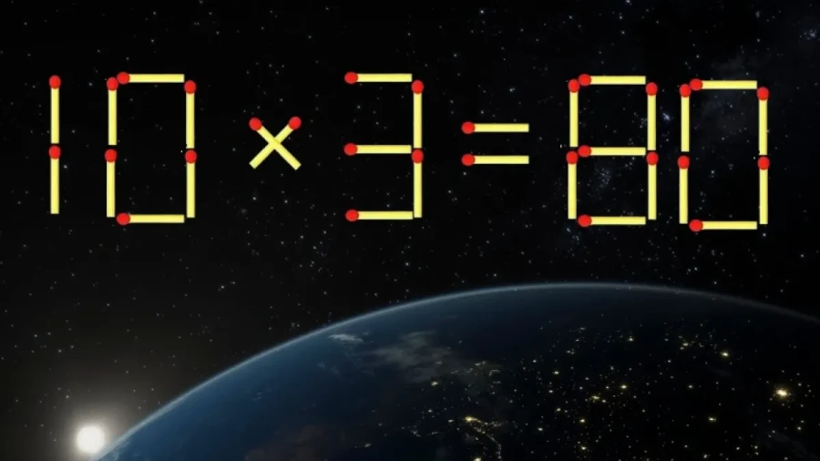 На картинке мы видим пример «10×3=80», в котором есть ошибка. Его можно исправить, переставив всего одну спичку. Попробуйте найти правильный вариант, не заглянув в подсказку.
