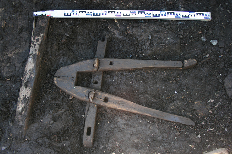 В 2014 году на Троицком раскопе археологи обнаружили в слоях XI века необычную деревянную вещь. По форме она напоминает рогатку, только без рукоятки. Ученым потребовалось 5 лет, чтобы понять – перед ними деталь повозки.