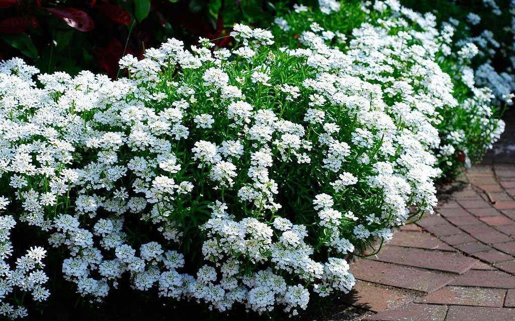 Иберис отлично подходит для солнечных мест. Его часто высаживают вдоль садовых дорожек.
