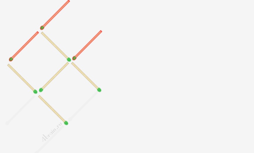 Если вы пробовали, но так и не вышло правильно переставить спички, можно взглянуть на подсказку. На другой картинке показано верное решение.
