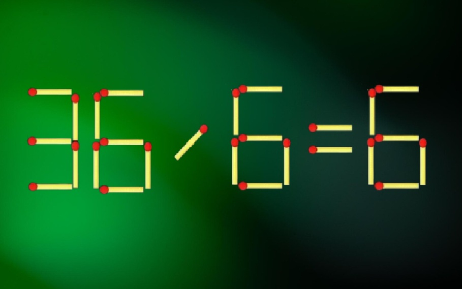 Решение простое и элегантное: превратить «30» в «36», аккуратно подвинув одну спичку. Если вы все сделали правильно, то у вас получится верный пример «36/6=6».